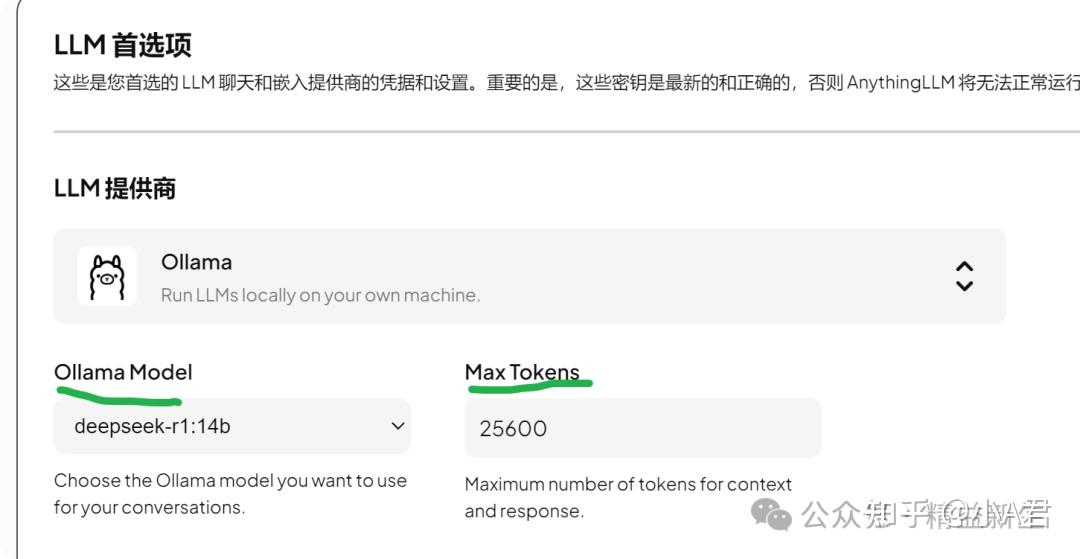 LLM提供商,在AnythingLLM中可以任意设置,既可以调用API,也可以调用本地部署的。 在部署本地LLM后,Max Tokens依然要根据模型本身的能力上限来设置。例如: