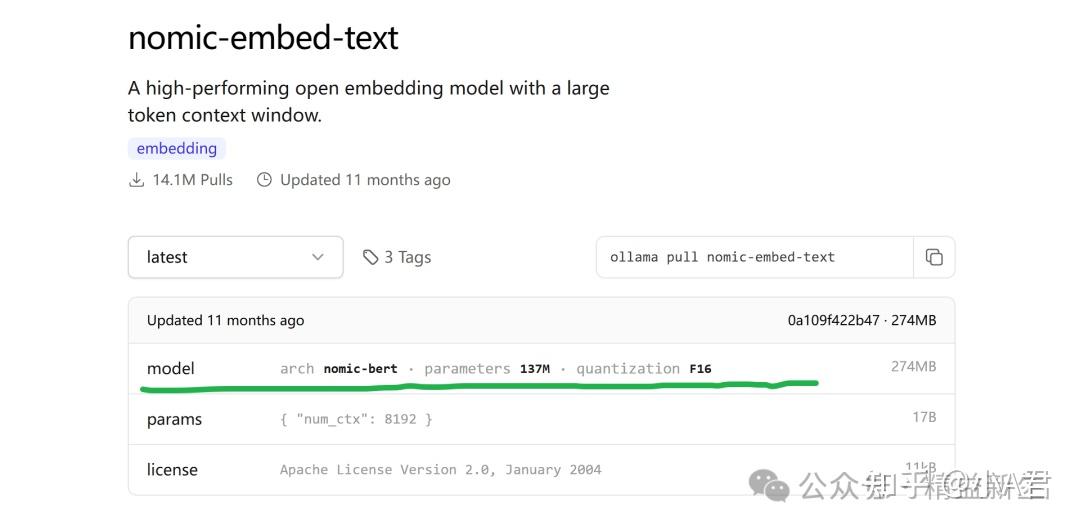 以nomic-embed-text 为例,点开这个“model”里面是模型参数: