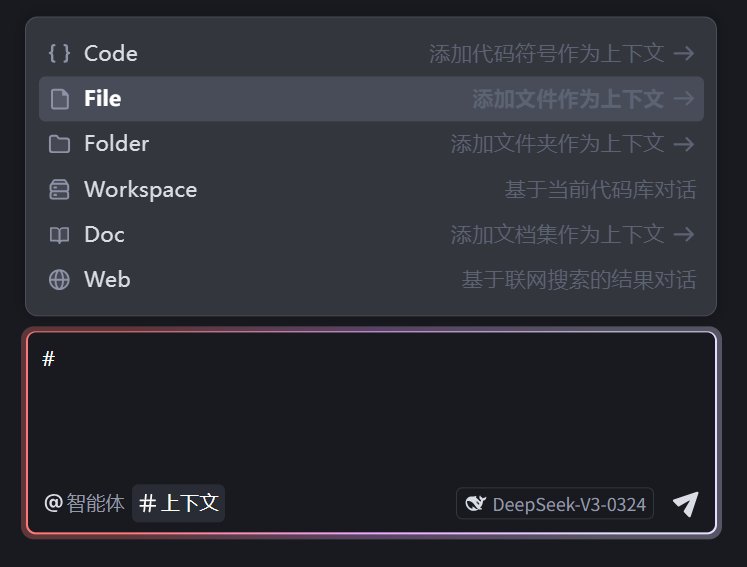 - 还有“引用”(#)功能太方便啦,可以随时引用文件夹下的文件、代码、文档、网页 ,让AI自动帮我们查看、解读!