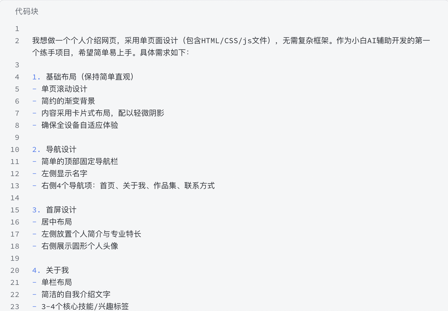 - 直接用自然语言(中文)描述你的想法,AI 帮你实现