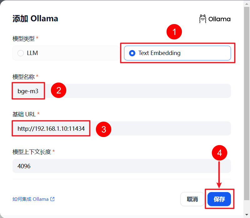 如果使用本机内网IP联不通的话,可以尝试把指定 Ollama 的 API 地址改为host.docker.internal:11434 试试