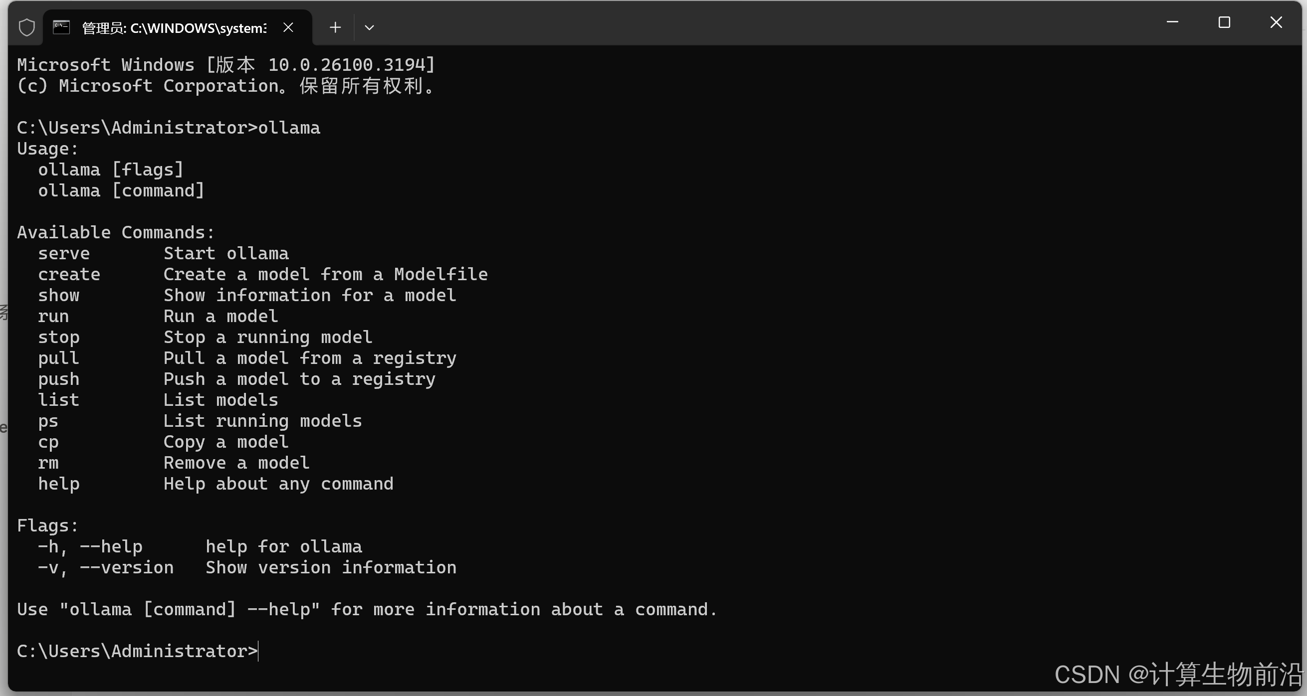 接下来win+R进入命令行界面,输入ollama就会返回相应的信息