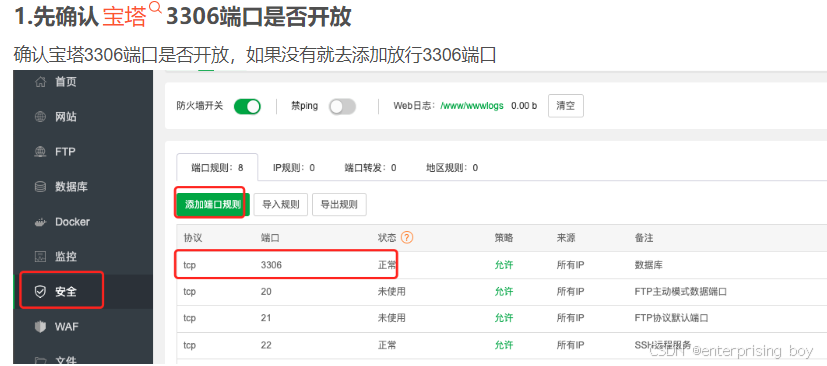 宝塔127.0.0.1状态:root用户连接失败,请尝试重置数据库root密码后重新添加
