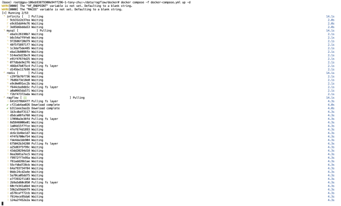 RAGFlow镜像拉取完成,相关服务启动