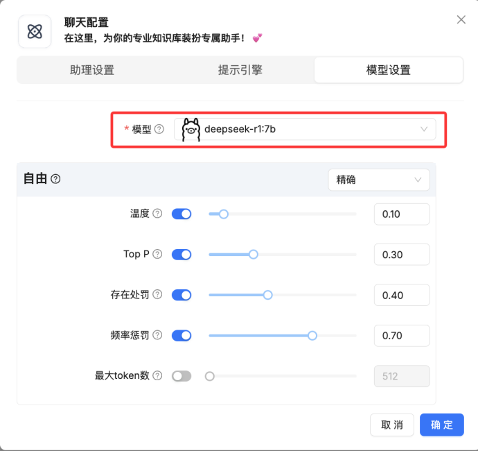 通过ollama 拉取deepseek-r1:7b 做为chat类型的模型