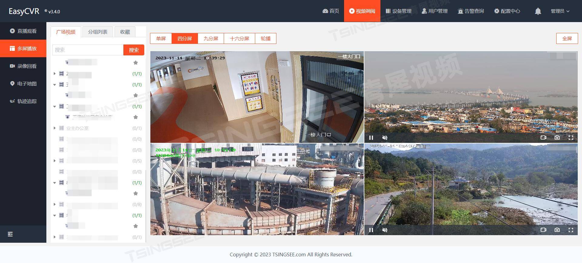 视频监控平台EasyCVR支持通过部署电子大屏/电视墙来实现监控视频上墙显示等,能支持单画面、多画面展示(4、9、16);支持提供SDK、HTTP接口,基于国标GB28181协议的级联功能及标准API接口,能将街道的视频监控资源对接到上级监控中心,实现街道办的智能化、网格化监管。