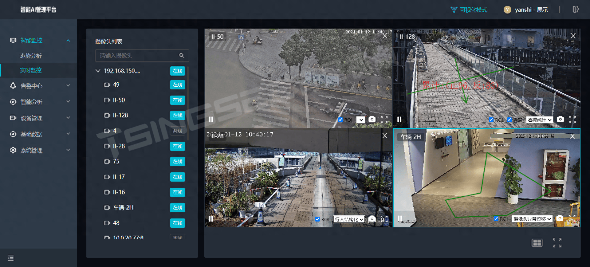 TSINGSEE青犀AI智能分析网关V4还支持人脸识别、车辆智能识别与管控、高空抛物、周界入侵防范、小区卫生环境等智能识别和预警。通过人工智能算法,实现对异常事件的自动识别和预警,加强对小区安全的防范,实现小区智能化监管能力,提高监管效率。感兴趣的用户可以联络我们。