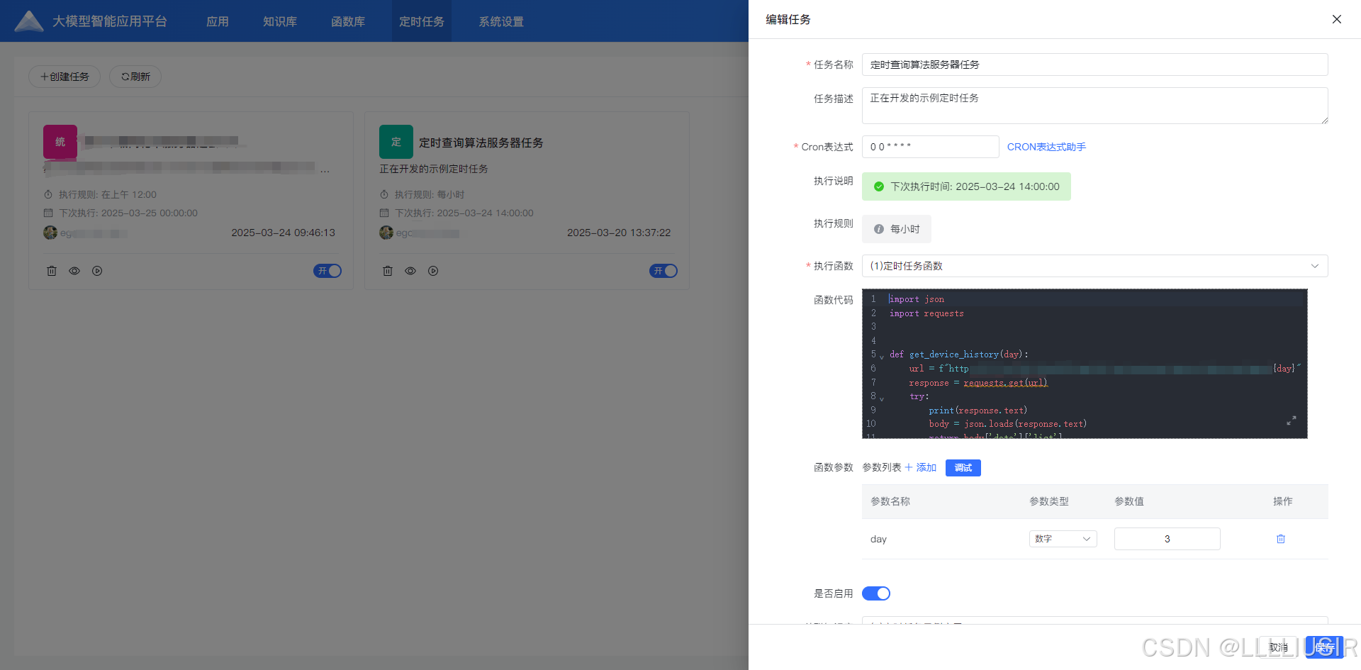 可以选择 【函数】、关联的【知识库】,定时执行结果自动同步到知识库中