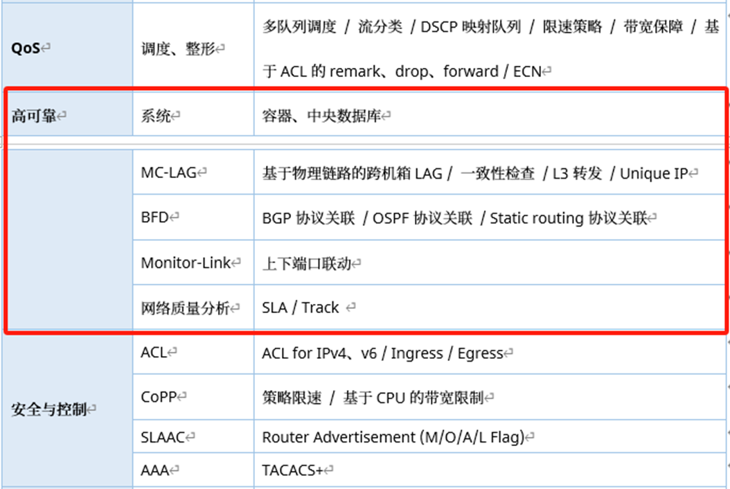 原始数据是星融元AsterNOS网络操作系统的文档,其中涉及到高可靠特性的部分如下。