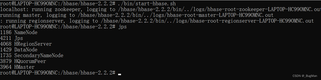 hbase依赖于hdfs,所以要先启动hdfs,hdfs依赖于ssh,所以最先启动ssh。