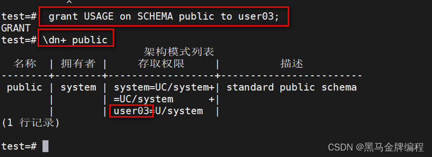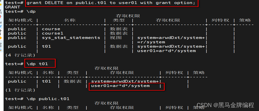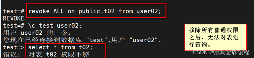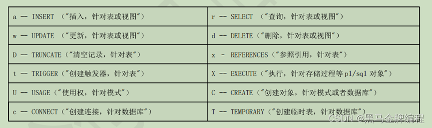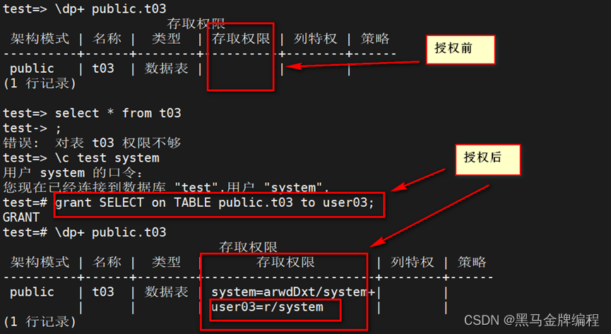 数据库的表、索引、视图等,在数据库中的一切都可以称为数据库对象。\l\dn+以表为例\dpgrant 权限 on 模式.表名 to 授权用户 with grant option;\dt+ 表名alter table 模式.表名 owner to 用户名;DROPGRANTREVOKE等特殊权限总是隐式地属于拥有者,不能直接查询到这些权限信息,也不能被授予或撤销。revoke ALL on 模式.表