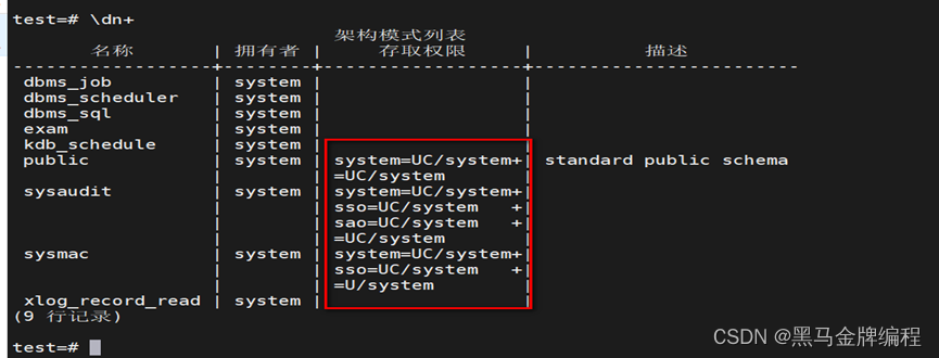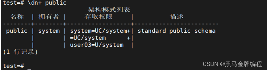 \dn+ 模式 #查看模式的权限列表