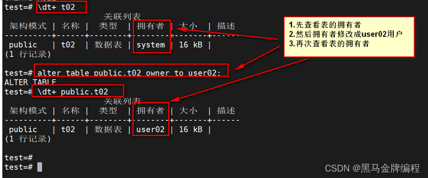 alter table 模式.表名 owner to 用户名;