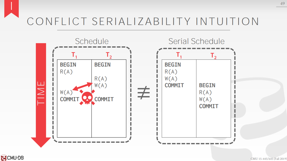 可串行化是最高等级的隔离级别,如果一种事务调度是可串行化的,那么最终的效果等同于将多事务串行执行。如果两个事务都只对数据库进行读操作,就不会有冲突问题,不管怎么调度,都不会有一致性问题。但是一旦有一个事务有写操作,就会产生冲突。