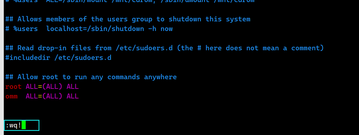 omm ALL=(ALL) ALL