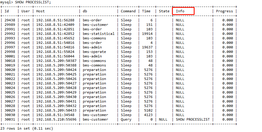 出现如下图,如果status列有lock字眼,那么通过Info状态就可以得出哪张表被锁了: