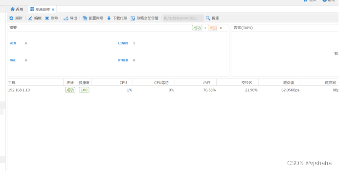 2) 登录部署好的 DEM,在监控和告警模块下单击主机,打开主机面板,在工具栏选择