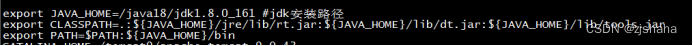 export JAVA_HOME=/java18/jdk1.8.0_161 #jdk安装路径