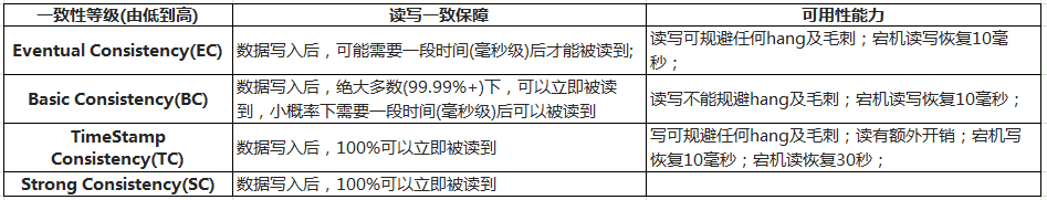在这套架构下,Lindorm拥有了以下几个一致性级别,用户可以根据自己的业务自由选择一致性级别: