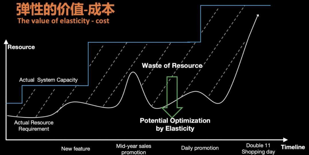 - 业务弹性难以满足:当遇到业务突发流量高峰或者异常请求时,很难在短时间内找到新的物理机扩容。