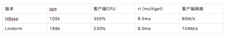 注:表中的客户端CPU代表HBase/Lindorm客户端消耗的CPU资源,越小越好。