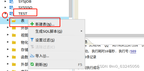 点击【TEST】模式,点击左边小三角标识,再右键【表】,点击【新建表】