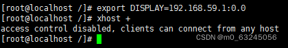 2.执行export DISPLAY=192.168.59.1:0.0 及xhost +