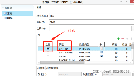 选择【EMP_ID】,再在其【主键】项打钩,完成设置。