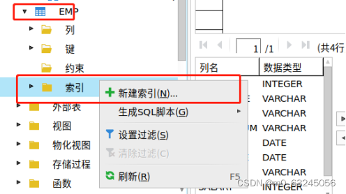 【EMP】表的三角形图标,再右击【索引】,之后点击【新建索引】