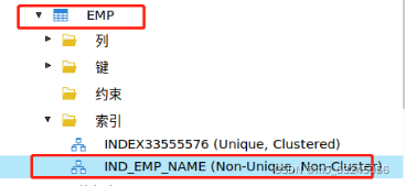 点击【EMP】表下的【索引】,如有【IND_EMP_NAME】表示建立成功。