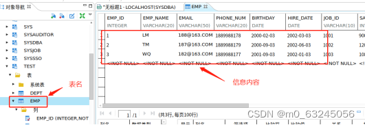 命令(建表):CREATE TABLE "TEST"."EMP"