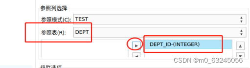 把【参照表】下框【DEPT_ID-(INTEGER)】,移动到右框中