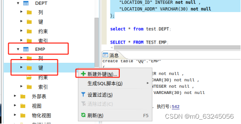 左击【EMP】表旁边三角形图标,右击【键】,再左键【新建外键】
