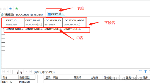 【数据类型】:定义数据所属类型(INTEGER、VARCHAR、INT、FLOAT等)