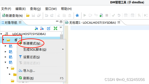 模式:定义语句创建一个架构,并且可以在概念上将其看作是包含表、视图和权限定义的对象。在 DM 中,一个用户可以创建多个模式,一个模式中的对象(表、视图)可以被多个用户使用