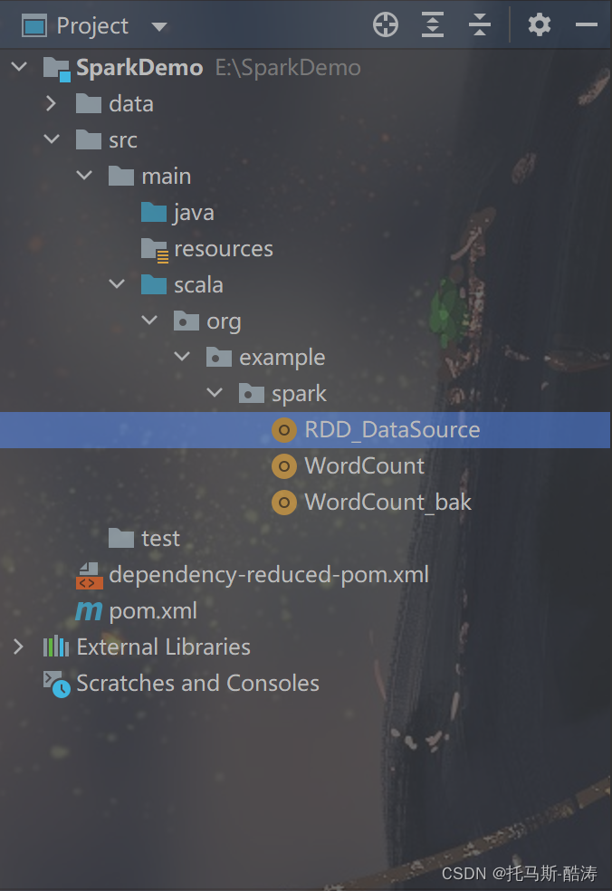 <?xml version="1.0" encoding="UTF-8"?> <project xmlns="http://maven.apache.org/POM/4.0.0" xmlns:xsi="http://www.w3.org/2001/XMLSchema-instance" xsi:schemaLocation="http://maven.apache.org/POM/4.0.0 http://maven.apache.org/xsd/maven-4.0.0.xsd"> <modelVersion>4.0.0</modelVersion> <groupId>cn.itcast</groupId> <artifactId>SparkDemo</artifactId> <version>1.0-SNAPSHOT</version> <repositories> <repository> <id>aliyun</id> <url>http://maven.aliyun.com/nexus/content/groups/public/</url> </repository> <repository> <id>apache</id> <url>https://repository.apache.org/content/repositories/snapshots/</url> </repository> <repository> <id>cloudera</id> <url>https://repository.cloudera.com/artifactory/cloudera-repos/</url> </repository> </repositories> <properties> <encoding>UTF-8</encoding> <maven.compiler.source>1.8</maven.compiler.source> <maven.compiler.target>1.8</maven.compiler.target> <scala.version>2.12.11</scala.version> <spark.version>3.0.1</spark.version> <hadoop.version>2.7.5</hadoop.version> </properties> <dependencies> <!--依赖Scala语言--> <dependency> <groupId>org.scala-lang</groupId> <artifactId>scala-library</artifactId> <version>${scala.version}</version> </dependency> <!--SparkCore依赖--> <dependency> <groupId>org.apache.spark</groupId> <artifactId>spark-core_2.12</artifactId> <version>${spark.version}</version> </dependency> <!-- spark-streaming--> <dependency> <groupId>org.apache.spark</groupId> <artifactId>spark-streaming_2.12</artifactId> <version>${spark.version}</version> </dependency> <!--spark-streaming+Kafka依赖--> <dependency> <groupId>org.apache.spark</groupId> <artifactId>spark-streaming-kafka-0-10_2.12</artifactId> <version>${spark.version}</version> </dependency> <!--SparkSQL依赖--> <dependency> <groupId>org.apache.spark</groupId> <artifactId>spark-sql_2.12</artifactId> <version>${spark.version}</version> </dependency> <!--SparkSQL+ Hive依赖--> <dependency> <groupId>org.apache.spark</groupId> <artifactId>spark-hive_2.12</artifactId> <version>${spark.version}</version> </dependency> <dependency> <groupId>org.apache.spark</groupId> <artifactId>spark-hive-thriftserver_2.12</artifactId> <version>${spark.version}</version> </dependency> <!--StructuredStreaming+Kafka依赖--> <dependency> <groupId>org.apache.spark</groupId> <artifactId>spark-sql-kafka-0-10_2.12</artifactId> <version>${spark.version}</version> </dependency> <!-- SparkMlLib机器学习模块,里面有ALS推荐算法--> <dependency> <groupId>org.apache.spark</groupId> <artifactId>spark-mllib_2.12</artifactId> <version>${spark.version}</version> </dependency> <dependency> <groupId>org.apache.hadoop</groupId> <artifactId>hadoop-client</artifactId> <version>2.7.5</version> </dependency> <dependency> <groupId>com.hankcs</groupId> <artifactId>hanlp</artifactId> <version>portable-1.7.7</version> </dependency> <dependency> <groupId>mysql</groupId> <artifactId>mysql-connector-java</artifactId> <version>8.0.23</version> </dependency> <dependency> <groupId>redis.clients</groupId> <artifactId>jedis</artifactId> <version>2.9.0</version> </dependency> <dependency> <groupId>com.alibaba</groupId> <artifactId>fastjson</artifactId> <version>1.2.47</version> </dependency> <dependency> <groupId>org.projectlombok</groupId> <artifactId>lombok</artifactId> <version>1.18.2</version> <scope>provided</scope> </dependency> </dependencies> <build> <sourceDirectory>src/main/scala</sourceDirectory> <plugins> <!-- 指定编译java的插件 --> <plugin> <groupId>org.apache.maven.plugins</groupId> <artifactId>maven-compiler-plugin</artifactId> <version>3.5.1</version> </plugin> <!-- 指定编译scala的插件 --> <plugin> <groupId>net.alchim31.maven</groupId> <artifactId>scala-maven-plugin</artifactId> <version>3.2.2</version> <executions> <execution> <goals> <goal>compile</goal> <goal>testCompile</goal> </goals> <configuration> <args> <arg>-dependencyfile</arg> <arg>${project.build.directory}/.scala_dependencies</arg> </args> </configuration> </execution> </executions> </plugin> <plugin> <groupId>org.apache.maven.plugins</groupId> <artifactId>maven-surefire-plugin</artifactId> <version>2.18.1</version> <configuration> <useFile>false</useFile> <disableXmlReport>true</disableXmlReport> <includes> <include>**/*Test.*</include> <include>**/*Suite.*</include> </includes> </configuration> </plugin> <plugin> <groupId>org.apache.maven.plugins</groupId> <artifactId>maven-shade-plugin</artifactId> <version>2.3</version> <executions> <execution> <phase>package</phase> <goals> <goal>shade</goal> </goals> <configuration> <filters> <filter> <artifact>*:*</artifact> <excludes> <exclude>META-INF/*.SF</exclude> <exclude>META-INF/*.DSA</exclude> <exclude>META-INF/*.RSA</exclude> </excludes> </filter> </filters> <transformers> <transformer implementation="org.apache.maven.plugins.shade.resource.ManifestResourceTransformer"> <mainClass></mainClass> </transformer> </transformers> </configuration> </execution> </executions> </plugin> </plugins> </build> </project>注:pom依赖在业务实施中是极其重要的一环,相当于配置文件,例如可能需要的 jar 包,可能需要的 Scala 语言版本都在此处进行配置 等等