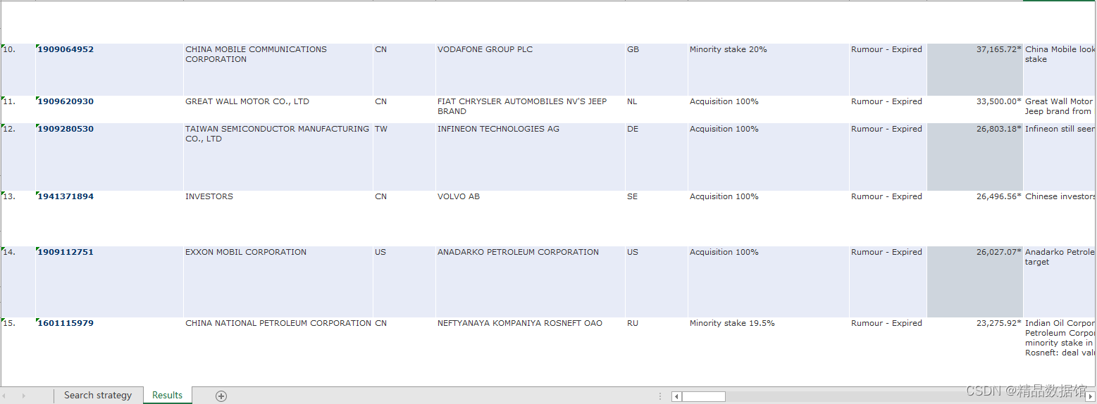 1997-2023年中国企业跨国并购数据Zephyr数据库