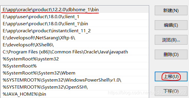 6.在编辑环境变量中找到oracle安装路径,我的是下面这个,请对照自己的看一下