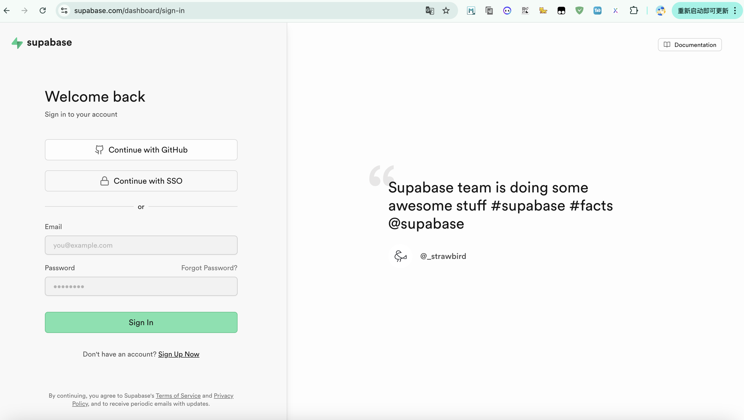 官网地址:Supabase,可以直接使用Github账号快捷登录