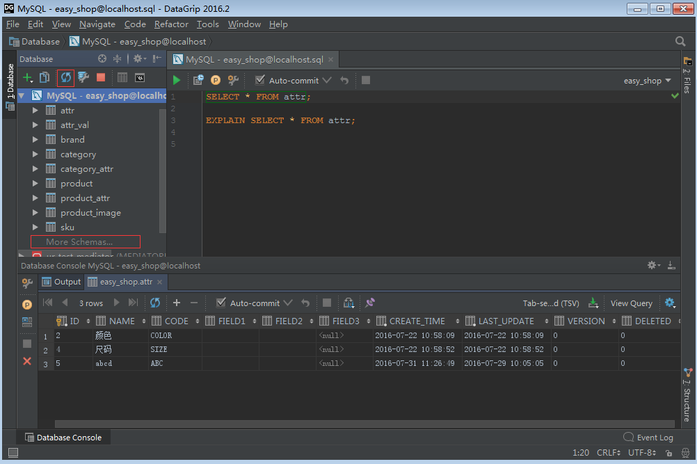 DataGrip的智能提示非常爽,无论是标准的sql关键字,还是表名、字段名,甚至数据库特定的字段,都能提示,不得不感叹这智能提示太强大了,Intellij IDEA的智能提示也是秒杀eclipse。