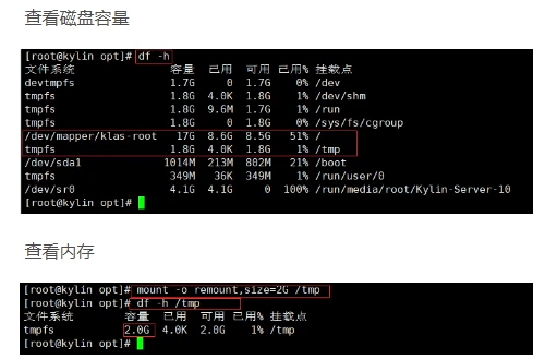 df -h/tmp //内存