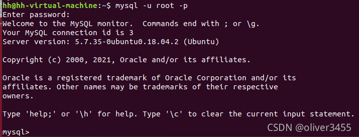 mysql -udebian-sys-maint -p进入MySQL,这时你需要mysql提供给你的密码,这时要重新打开一个终端