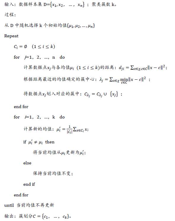 k-means算法以欧几里得距离作为距离或相似度测算,求对应的初始聚类中心数据的最优分类,使得评价结果最小。算法采用误差平方和准则函数作为聚类准则函数。
