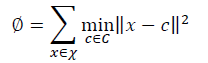 上的一组n个数据点。目标是选择k个聚类中心点,求每个数据点到最近的聚类中心距离平方和的最小值。