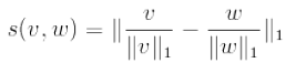 计算两个向量v 和w的相似度有几种度量方法(这里v* 和w* 表示经过L1范数标准化后的向量):