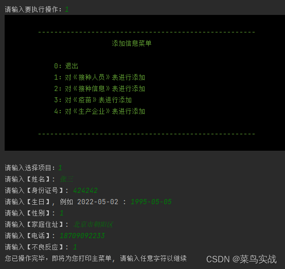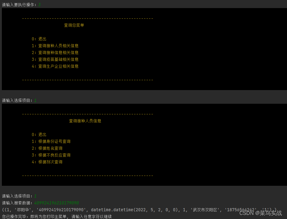 【课程设计实战】Python 实现疫苗接种数据库的管理