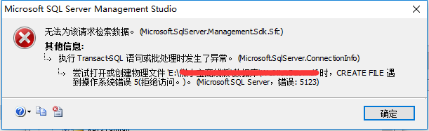 sqlserver附加sql数据库时提示“无法为该请求检索数据”