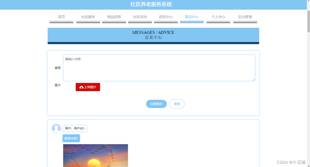 如图5.8显示的就是意见中心页面,用户登录后可以在意见中心发布意见。