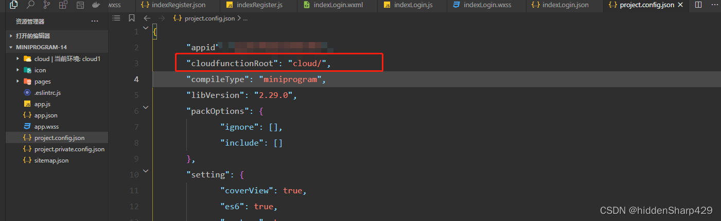 然后我们要在project.config.json文件中使用cloudfunctionroot来添加云函数路径