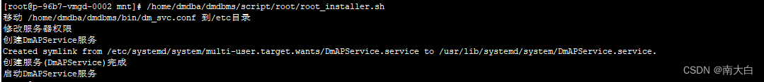 命令:./dm_service_installer.sh -t dmserver -i /home/dmdba/dmdbms/data/DAMENG/dm.ini -p DMSERVER